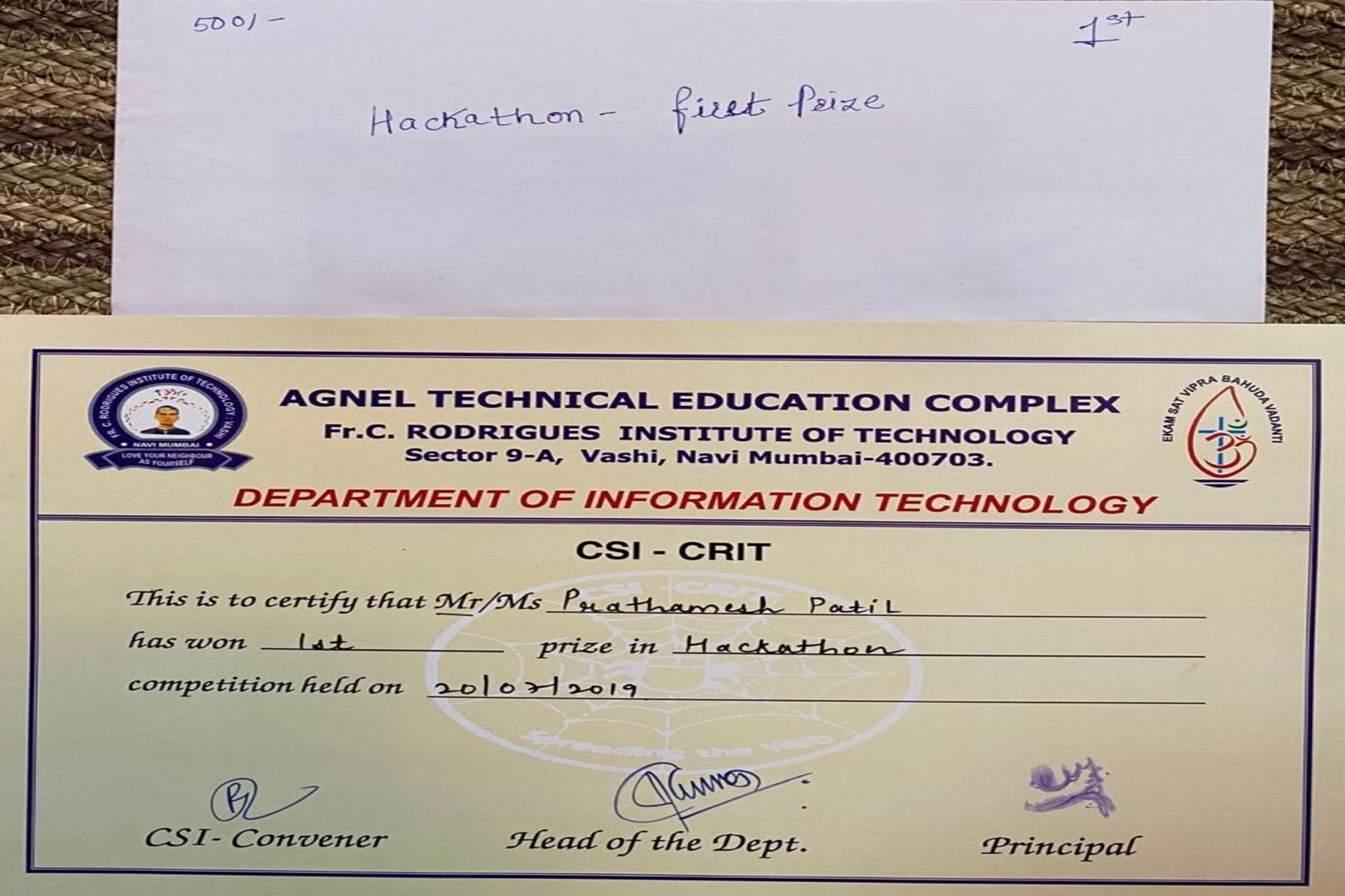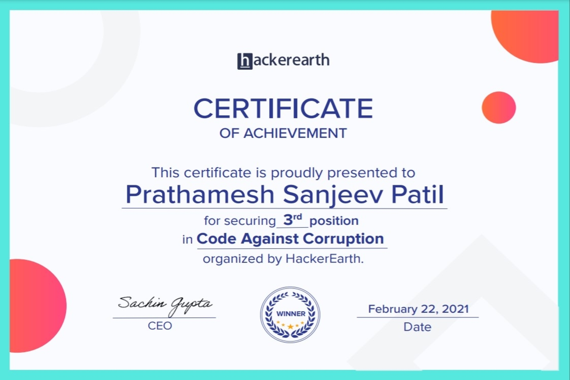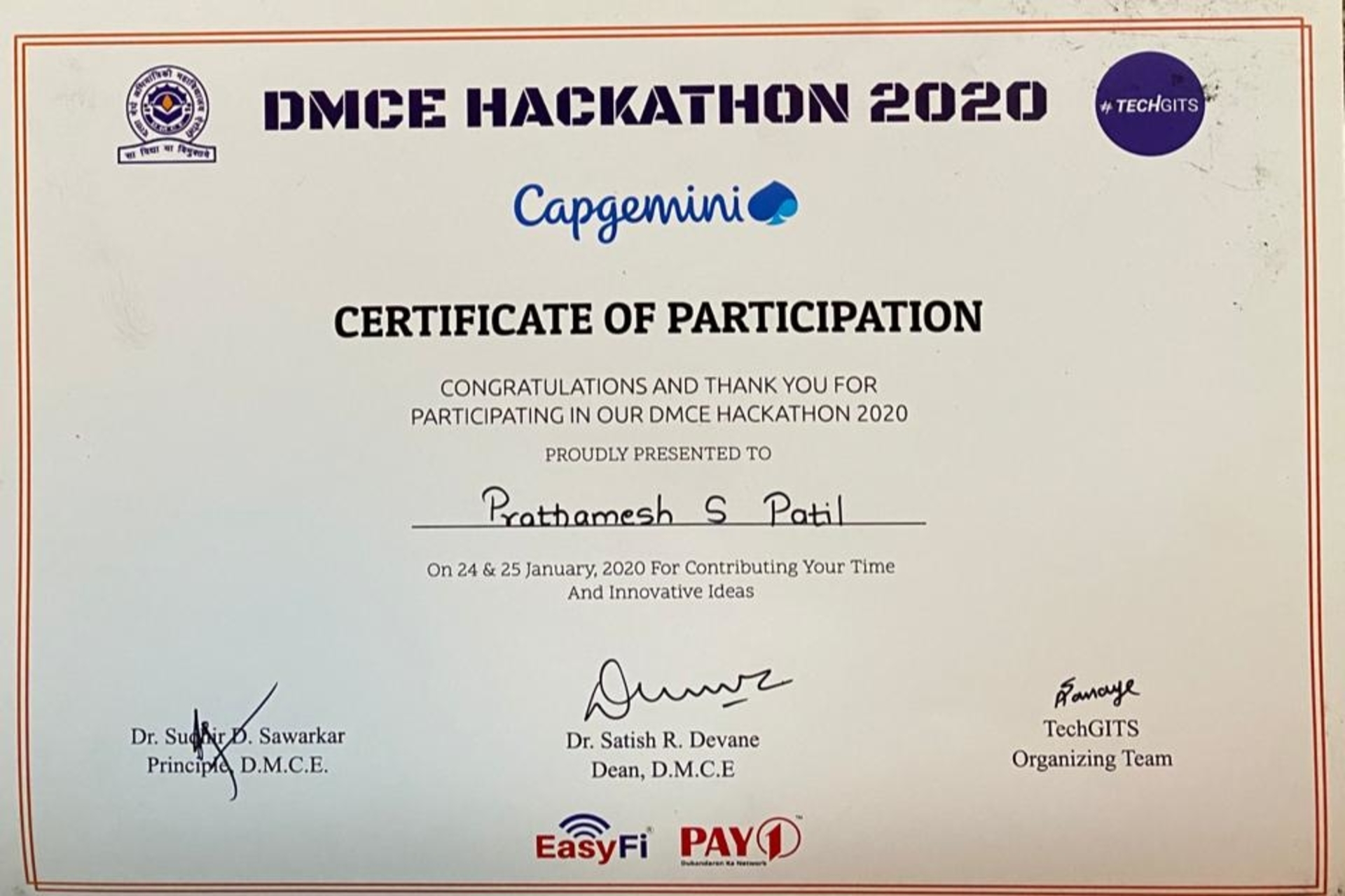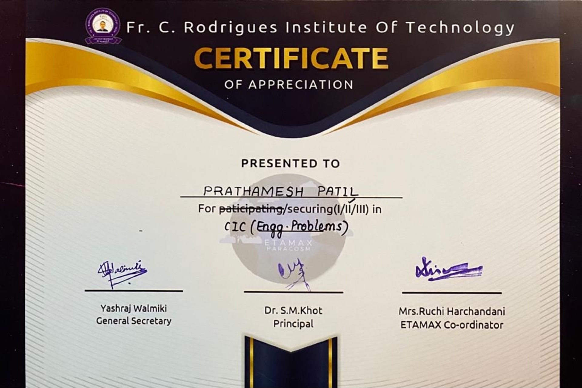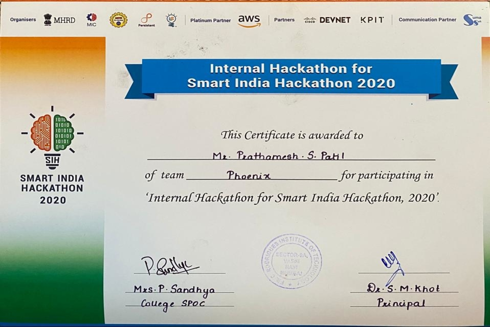 Won 2nd Prize in CIC Engineering Problem Hackathon for project {ISHAS}