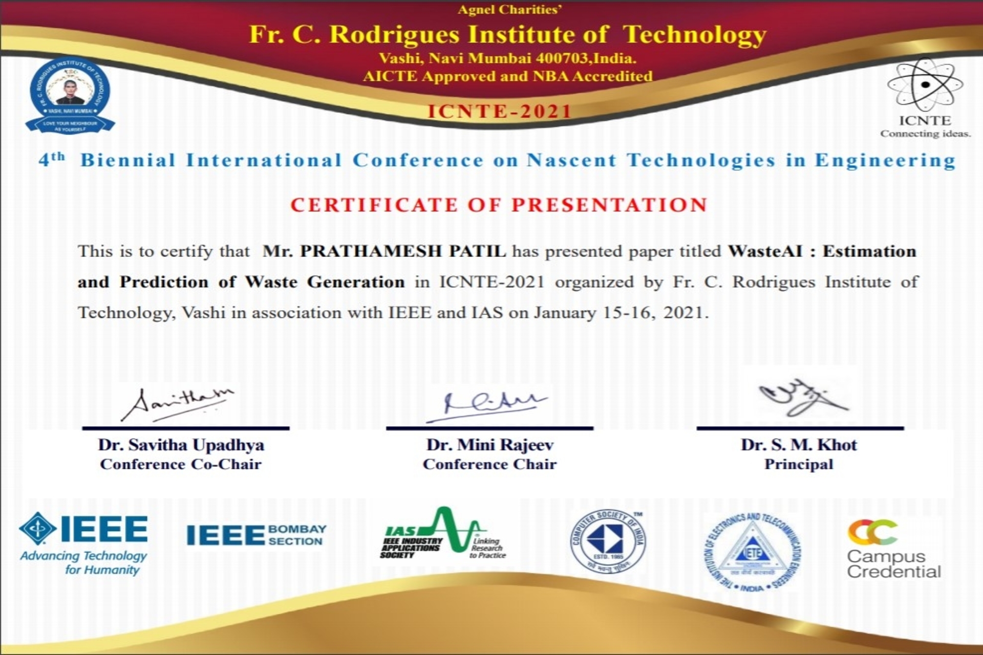 Technical Paper Presentation Compitation ICNTE-2021 paper title {WasteAI : Estimation and prediction of Waste Generation}