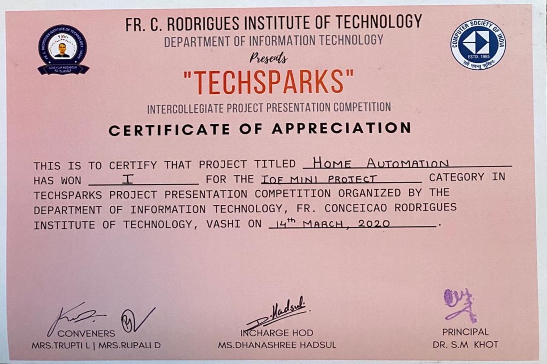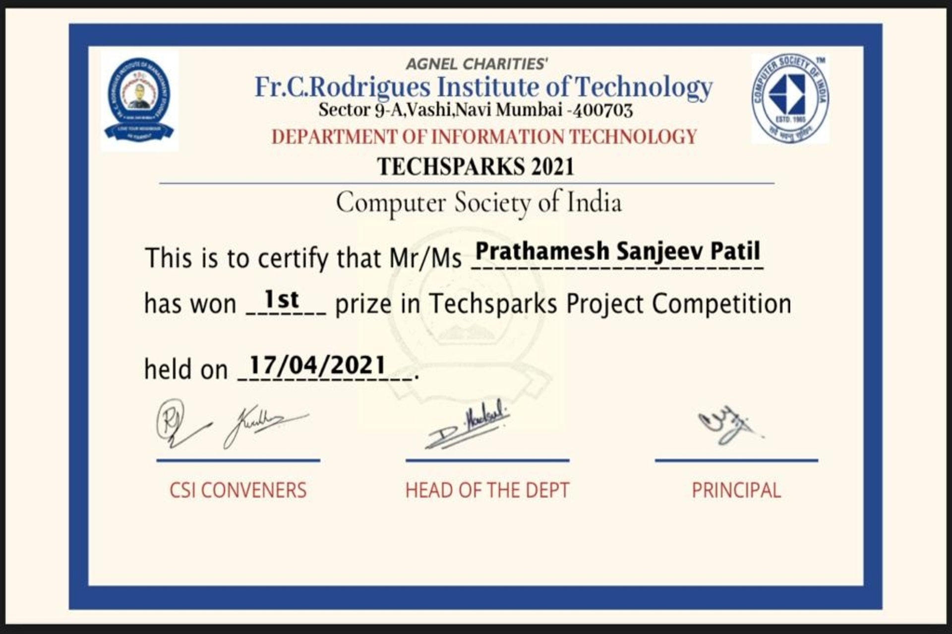 Won 1st prize in Techsparks-2021 Project Compitation in category {FINAL YEAR PROJECT}